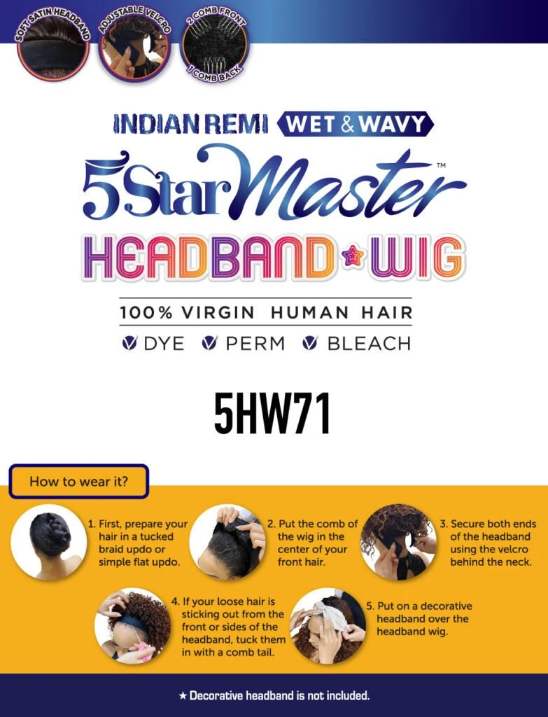 HARLEM 125 100% VIRGIN HUMAN HAIR 5 STAR MASTER HEADBAND WIG 5HW71 WAVE