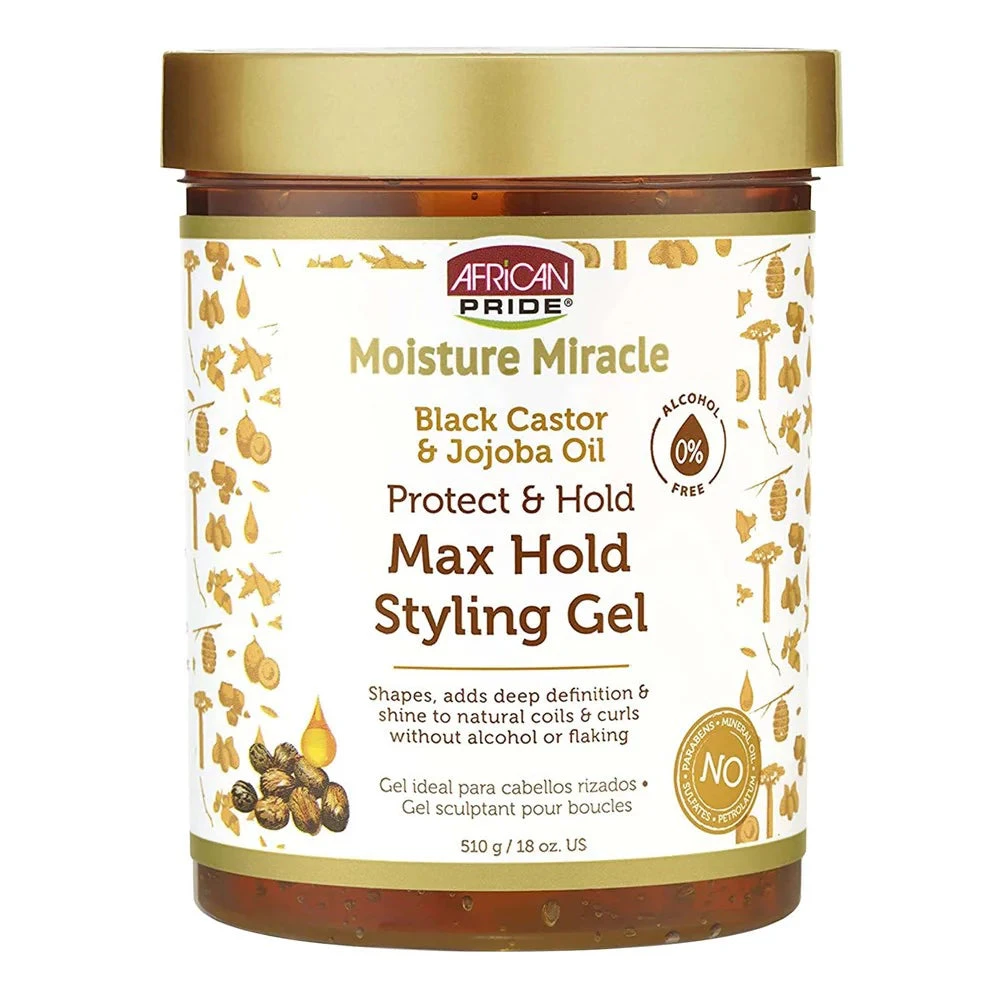 AFRICAN PRIDE MOISTURE MIRACLE BLACK CASTOR AND JOJOBA OIL MAX HOLD STYLING GEL
