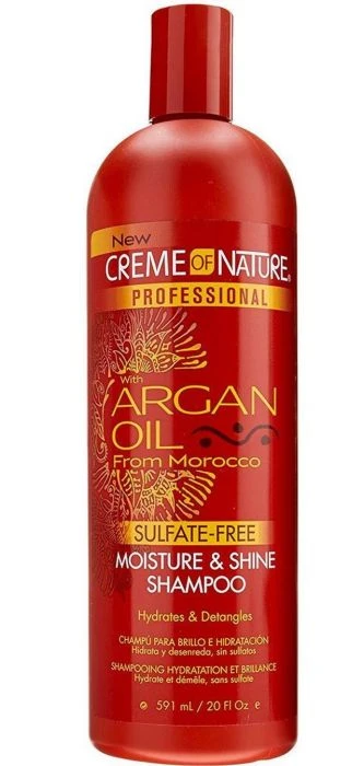 Creme of Nature with Argan Oil Sulfate-Free Moisture and Shine Shampoo is a sulfate-free formula that hydrates hair and adds Exotic Shine,â„¢ while gently cleansing without harsh moisture stripping agents. This shampoo strengthens hair while optimizing the moisture balance of the hair and scalp.