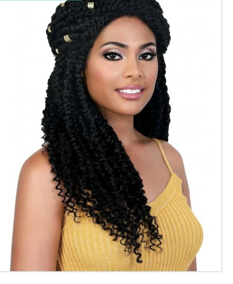 - Butterfly locs, passion twist, spring twist use water wave crochet braid.