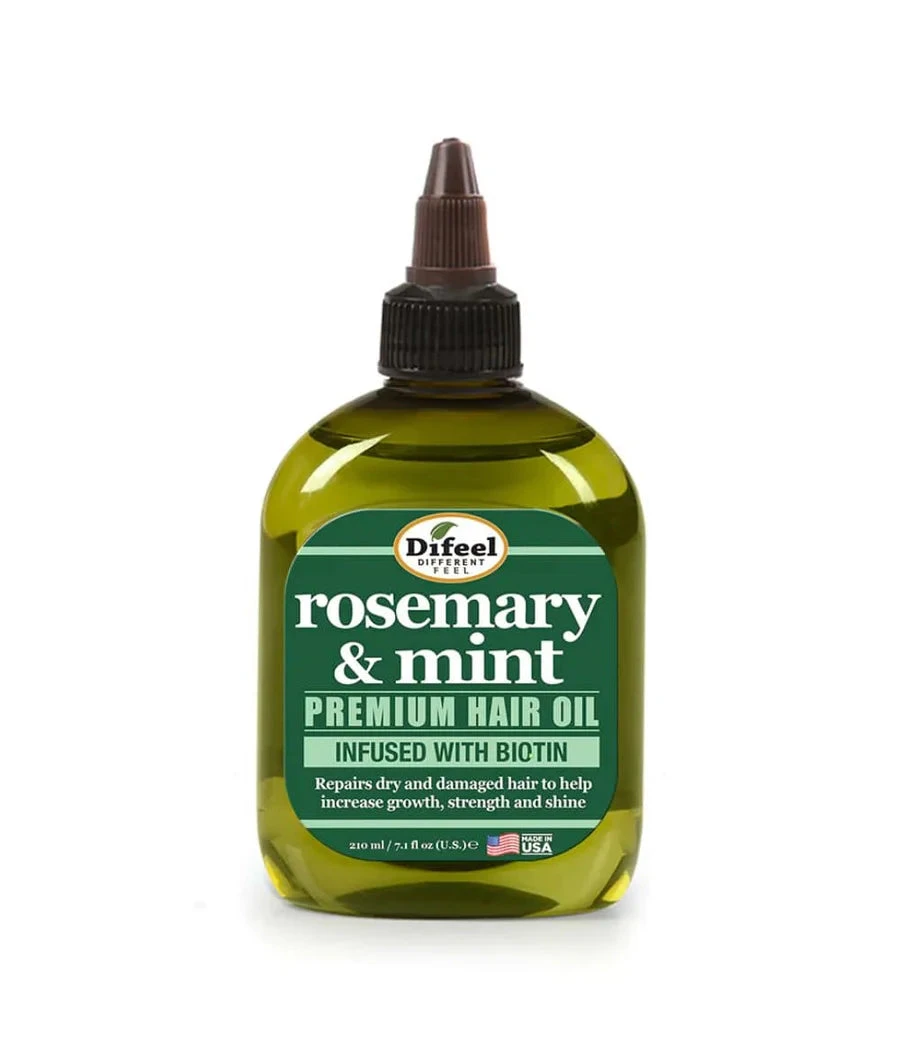 Our Difeel Rosemary & Mint Hair Oil is infused with nourishing Biotin. Biotin plays an important role in the health of your hair, skin, and nails. A lack of Biotin can lead to hair loss.