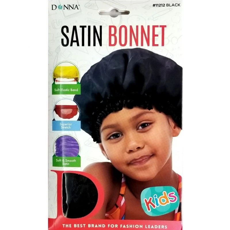 Donna Silky Soft Satin Bonnet Black- Large