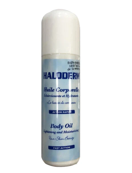 Haloderm Body Oil 125 ml Haloderm Oil is rich in vitamin E and Vegetable Oil, Sweet almond, Aloe Vera and its PH allows a perfect moisture deeply whole body making it more flexible and smooth.