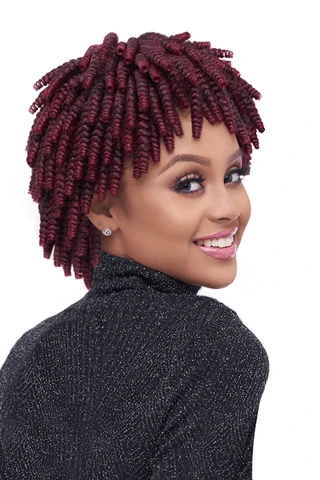 The small curl – the Cute and Lively – is a short, spiral curl. This protective style by Kimakalon resembles natural rod set curls. The realistic appearance of this hair will blend in perfectly with your natural hair. You can wear the curls as is – springy & tight – or you can have a bit more fun and turn style into a curly fro!