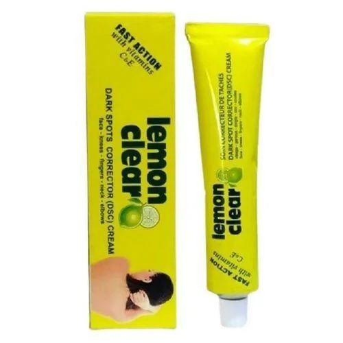 - Lemon Clear Cream is formulated with lemon extract to brighten the skin and diminish dark spots.Â
