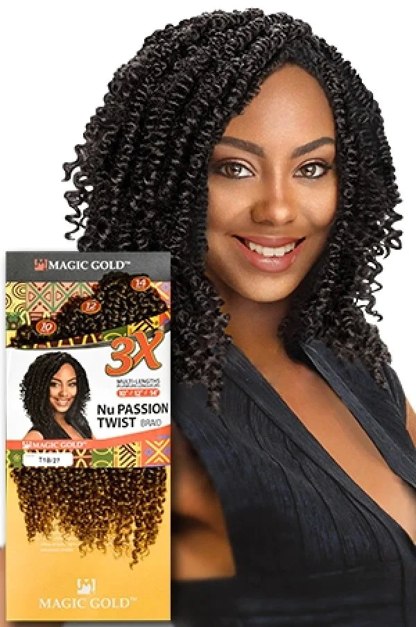Trendy Passion twist crochet braid. Medium size twists with natural curl ends. Multi-lengths pack; 10″, 12″, & 14″ Requires 3 – 4 packs for a full head