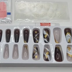 Kit includes 24 nails of different sizes, 1 Nail glue, 12 nail stickers, two prep pads, file, Manicure wood stick