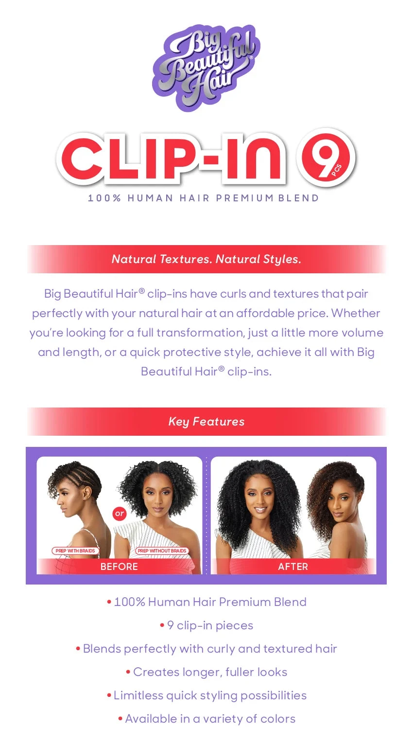 OUTRE BIG BEAUTIFUL HAIR CLIP-IN 9PCS – 4A KINKY CURL 10″
