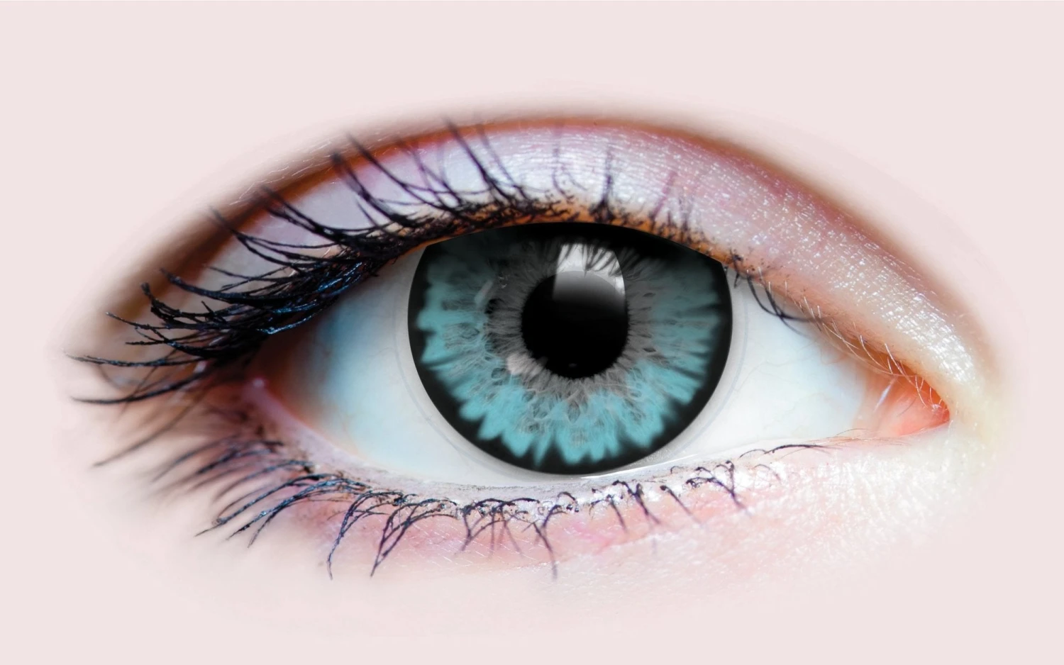 On light natural eyes, these beauty lenses deliver a bright aqua punch that’s highlighted by the contrast with the dark outer ring.