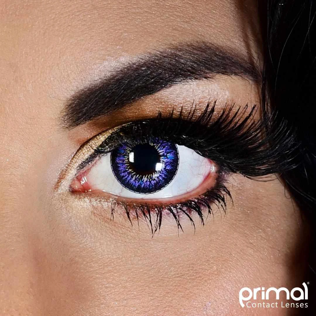 While your natural eye color will be subtly revealed at the very center of these lenses, the brightly contrasted iris of the MOONRISE LILAC will create a consistent effect with blue flecks peeking through the overall purple texture, whether your eyes are light or dark.
