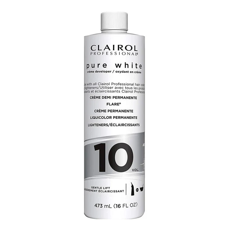 Clairol Professional pure white creme developer contains protective conditioners and emollients and is stabilized for 3 years. It is designed for use with permanent colours, and also perfect for use with all powder and liquid lighteners. Its creamy consistency makes it ideal for bowl-and-brush or bottle application.